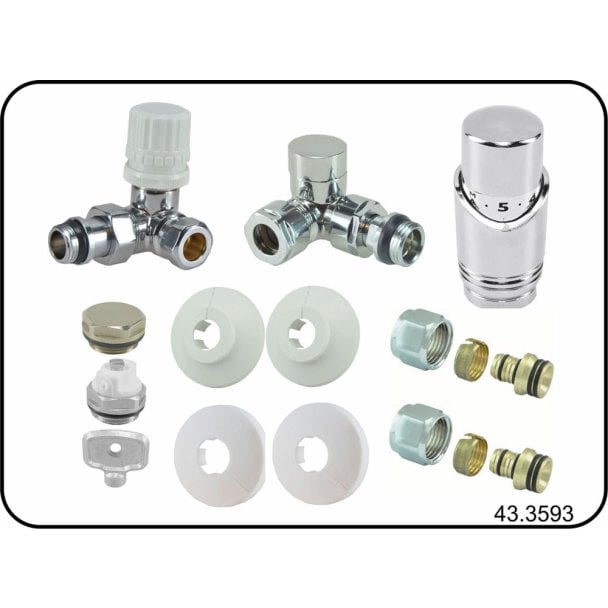 Riko Luxus Thermostat-Heizkörperanschlussset, Winklig, Linke Fehlanschlussrichtung